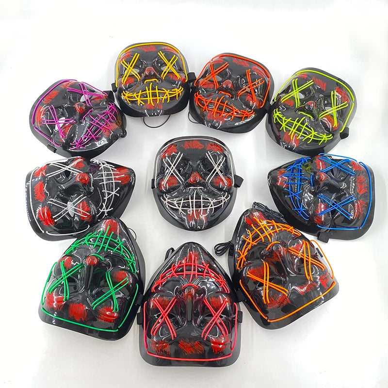 Step into the spotlight this Halloween with the Wireless Purge LED Mask β the ultimate glow-up accessory for fearless party-goers.